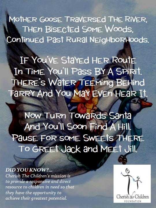 is based on Mother Goose and was chosen to remind us to Cherish All Children.