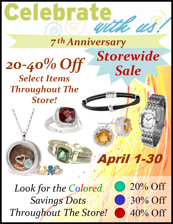 The clue card will also entitle you to an additional 10% Off any one Anniversary Sale item during the month of April, on top of our Anniversary Sale discount! (click HERE to see sale flyer)