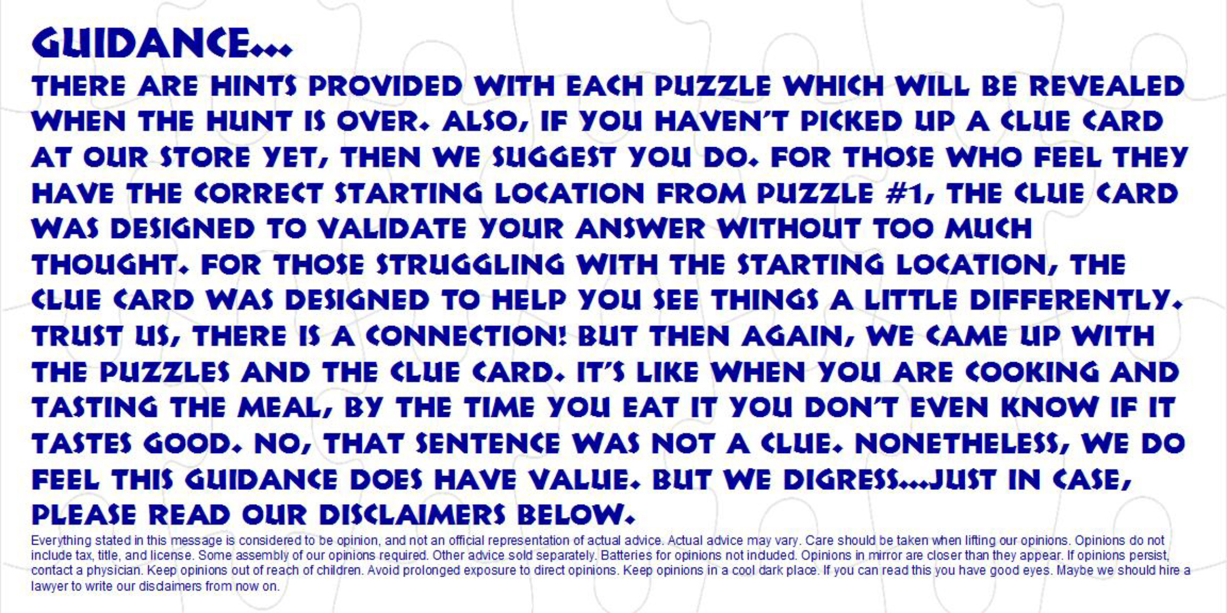 Click HERE to "Like Us" on Facebook to solve practice puzzles for prizes, be notified when information is posted, and monitor progress of the hunt. We may even post some hints there from time to time.