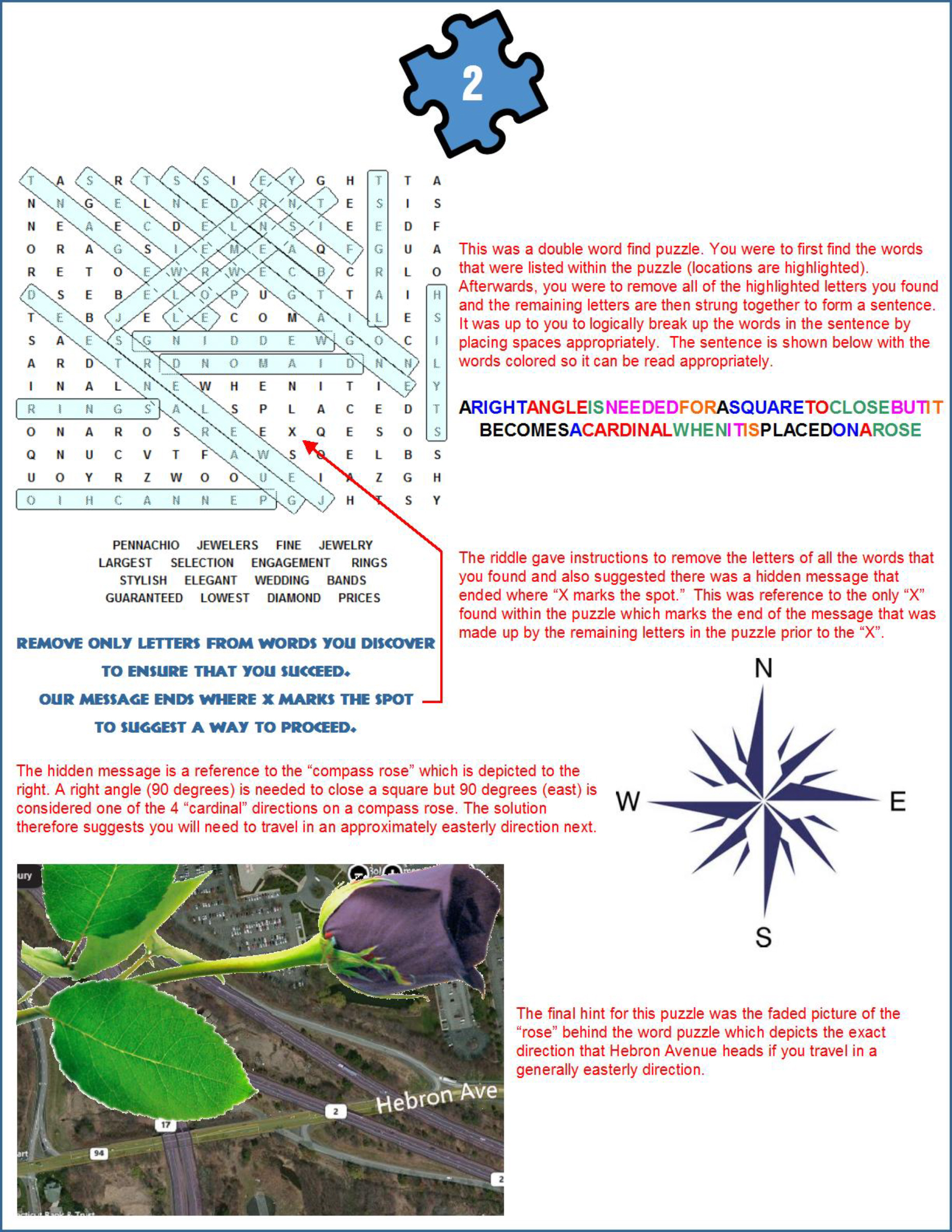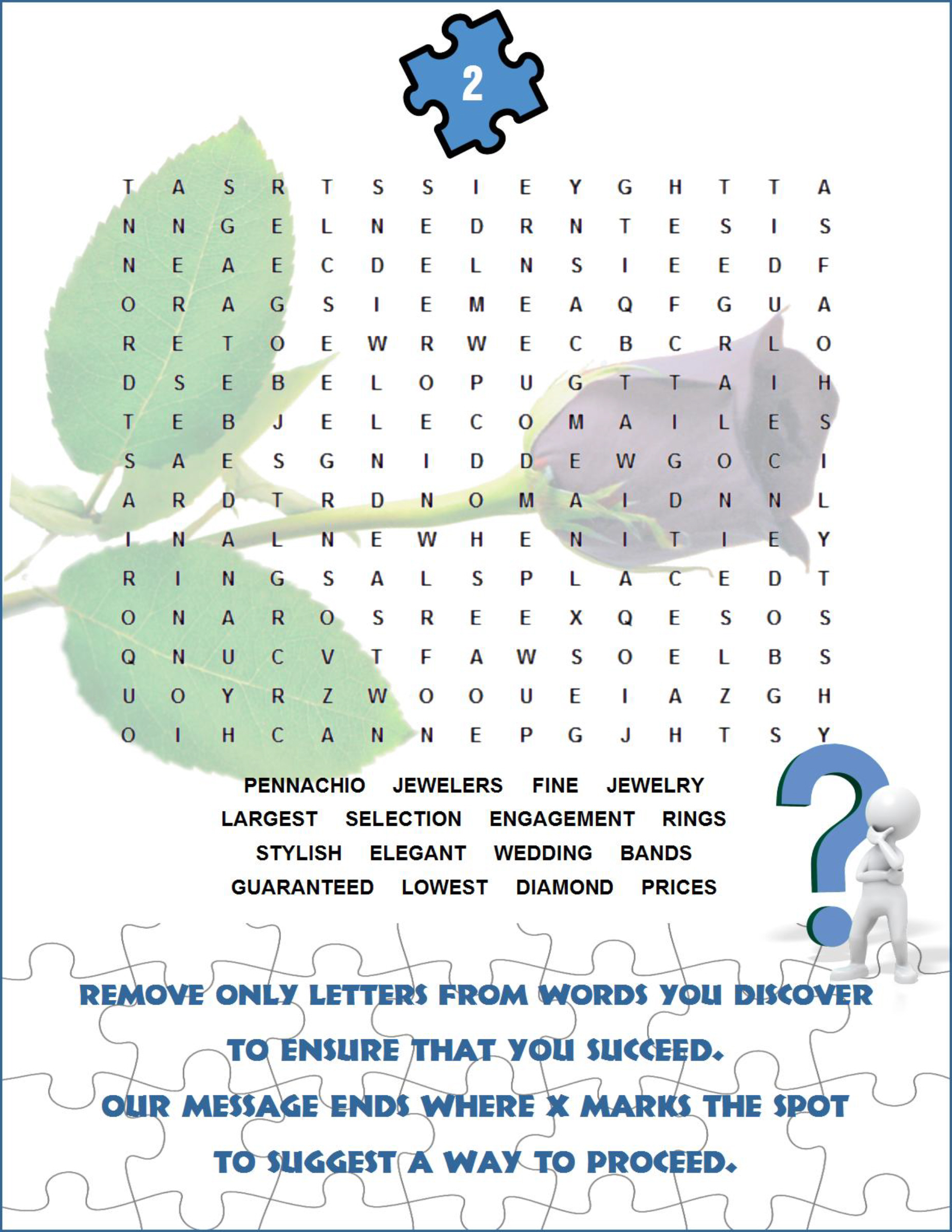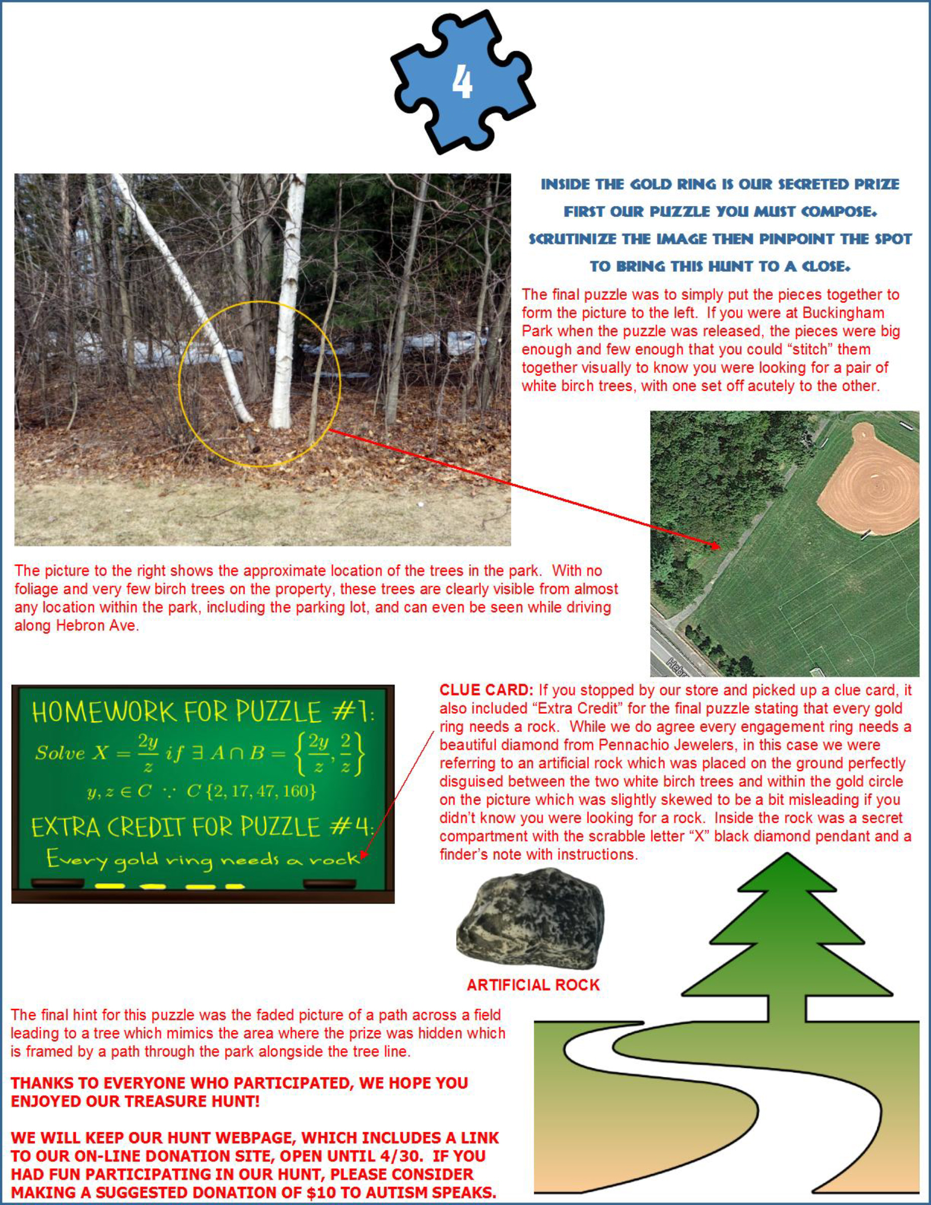 Once again, our insurance company didn't like us hiding actual diamond earrings so this year, in the spirit of the puzzle theme, what we really hid was a black diamond scrabble letter "X" pendant that will be used as proof to receive the actual diamond earrings at our store (you also get to keep the scrabble pendant)!