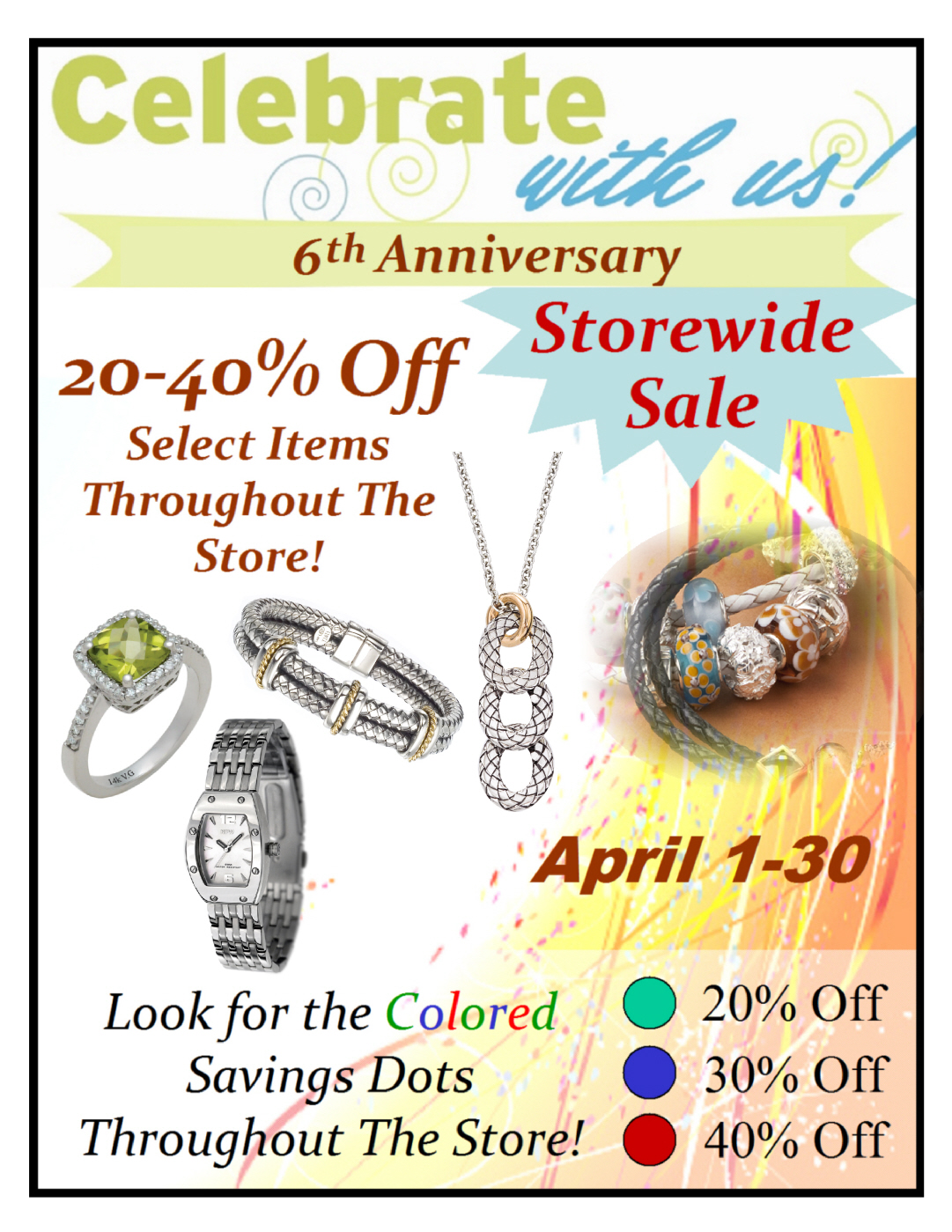 The clue card will also entitle you to an additional 10% Off any one Anniversary Sale item during the month of April on top of our Anniversary Sale discounts!