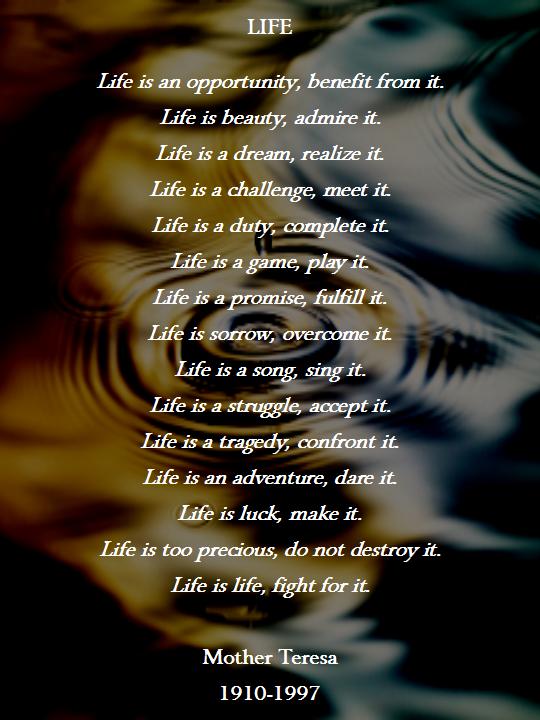Click here to read the entire poem titled 'Life' by Mother Teresa.
